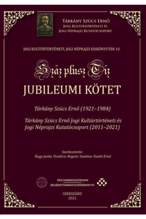 A "Száz plusz tíz" jubileumi kötet Dr. Tárkány Szücs Ernő, a magyar jogi néprajz nemzetközi hírű kutatója születésének centenáriumán visszaemlékezésekkel, tudományterületi összegző tanulmányokkal és kutatási források közreadásával tiszteleg a tudományos életmű előtt.